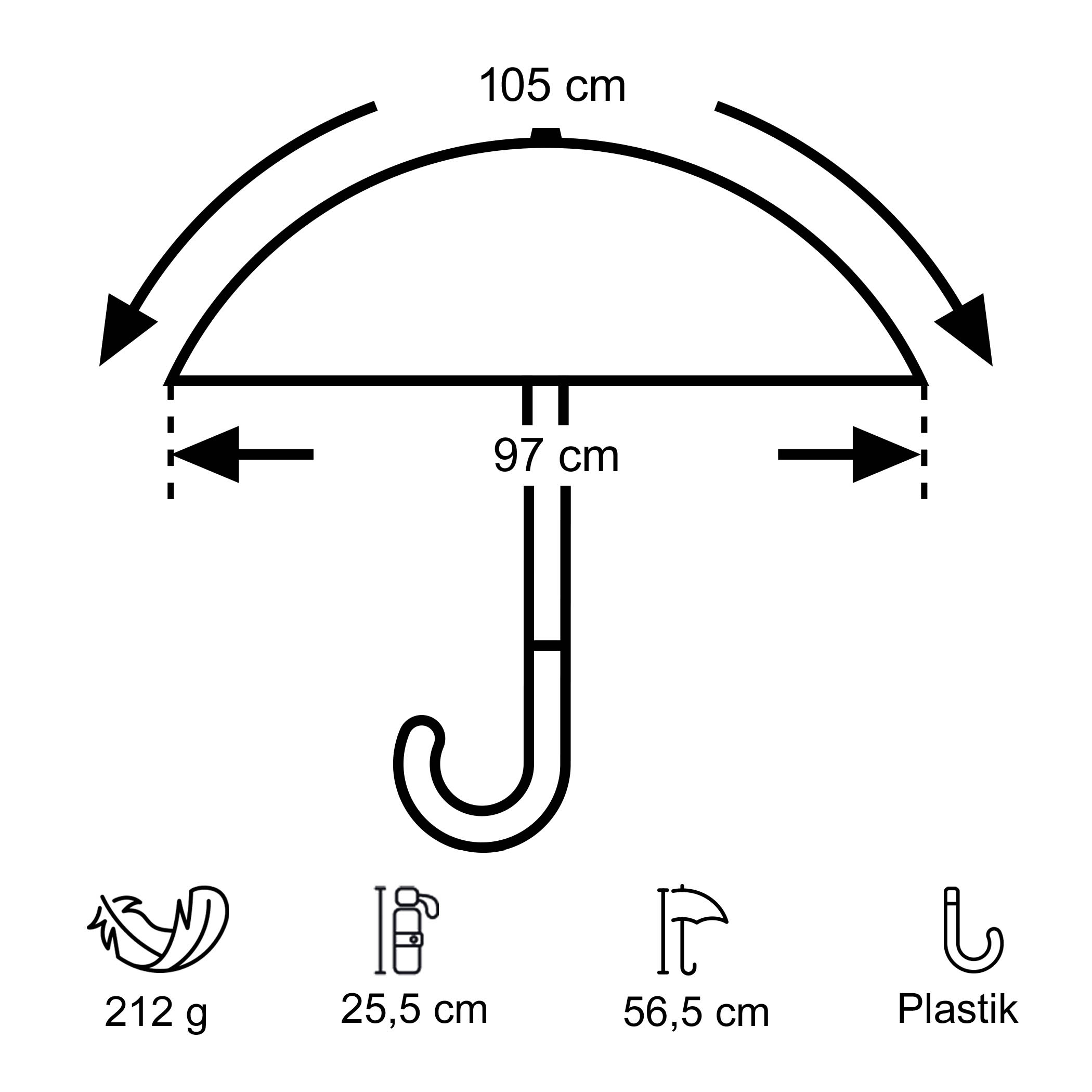 - Geschlossen ist der Taschenschirm "3224" nur rund 3 cm hoch und 25,5 cm lang